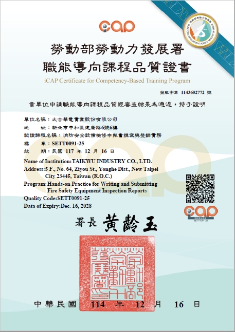 認證課程:消防安全設備檢修申報書撰寫與登錄實務
