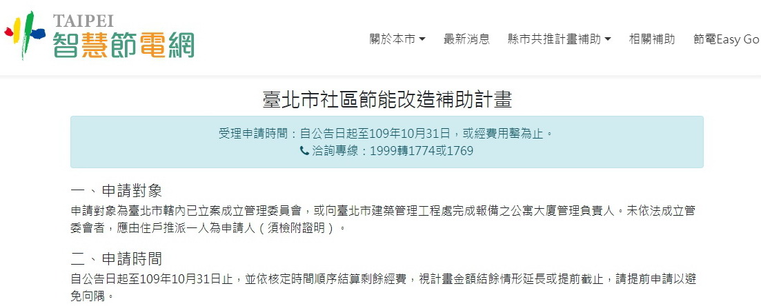 臺北市社區節能改造補助計畫開跑